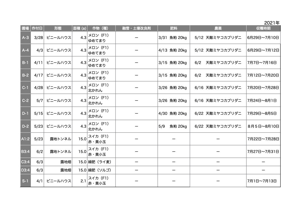・2020年圃場の名称を変更。(H→A3:4、I→B3:4、J→C3:4、E→D3:4、M-2→S-1)